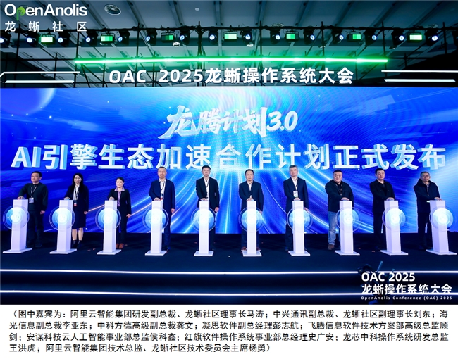 会上,龙腾计.0——AI引擎生态加速合作计划正式发布,标志着龙蜥社区在推动操作系统与AI技术创新融合、以及利用AI驱动上下游产业合作变革方面迈出了重要的一步。该计划将聚合社区超家产学研头部技术力量和资源,通过开源和商业双轮驱动模式,共同构建一个开放且具有创新活力的AI引擎生态系统。