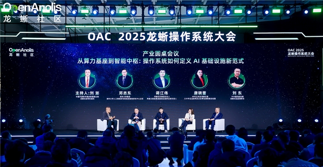 会上,阿里巴巴集团合伙人、阿里云智能集团基础设施事业部负责人蒋江伟;清华大学教授、清华大学人工智能研究院视觉智能研究中心主任邓志东;AMD公司全球副总裁、大中华区互联网及企业事业部销售总经理唐晓蕾;中兴通讯副总裁、龙蜥社区副理事长刘东;中国开源软件推进联盟副主席刘澎等五位嘉宾,现场进行了主题为“从算力基座到智能中枢:操作系统如何定义AI基础设施新范式”的产业圆桌讨论,深入探讨了AI算力井喷倒逼基础设施的重构,从管家到高级理财师的操作系统进化论,操作系统将成为AI产业化的核心杠杆点等话题。
